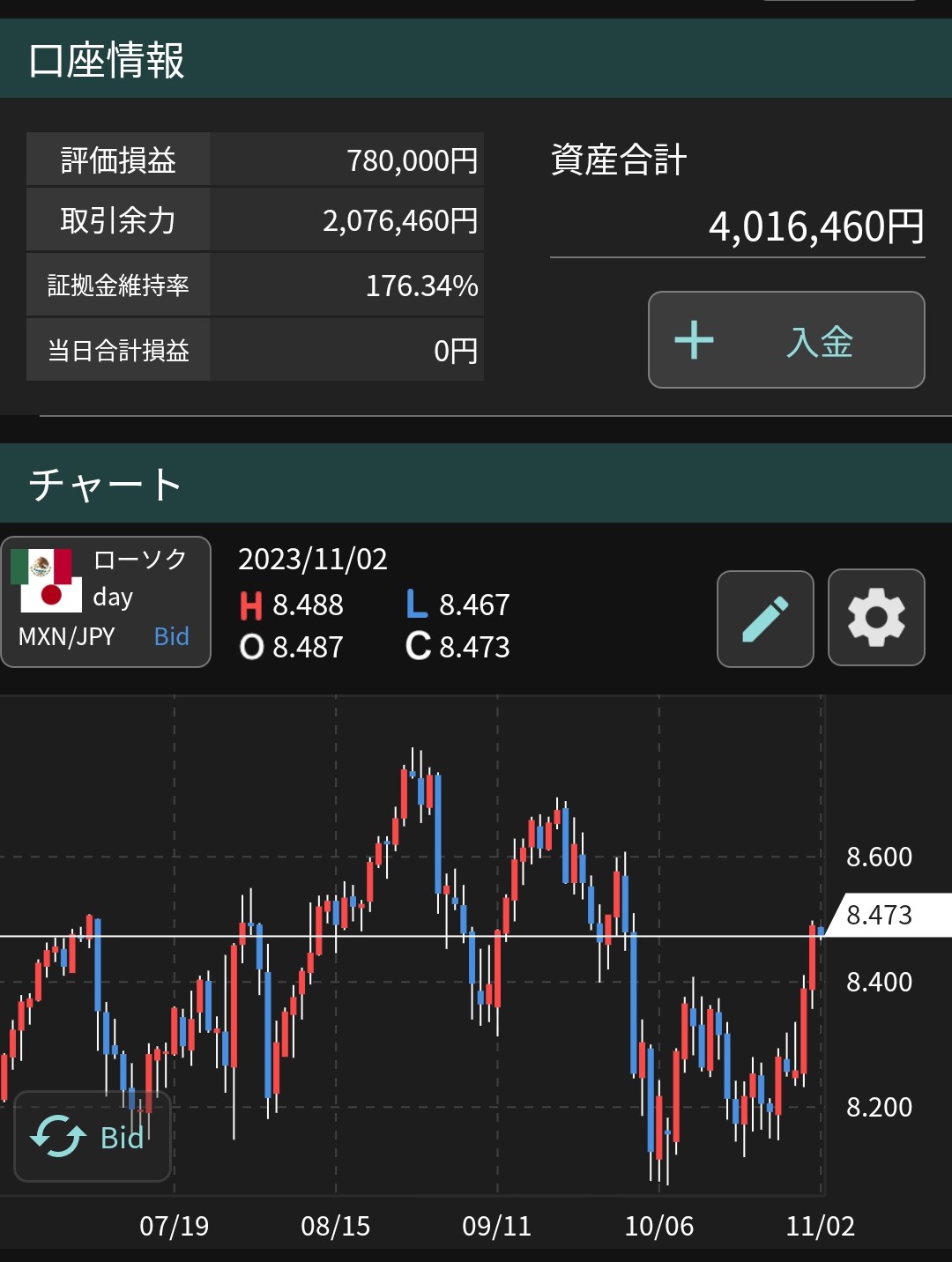メキシコペソの両建てサヤ取りに失敗した話。GMO外貨ex&楽天FX 公開日:2023年11月13日 FXトレード成績 メキシコペソは高金利通貨です。暴落は怖いけどスワップはほしい。暴落のリスクを回避して、それなりのスワップを毎日もらえそう。こんなもくろみで始めた両建てサヤ取りでしたが、失敗に終わりました。 ペソ両建てサヤ取りを始めるきっ […] 続きを読む