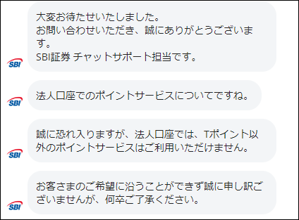 SBI証券の法人口座でポイント連携のエラーが出た。問い合わせたらTポイントしか付けられなくてガッカリした話